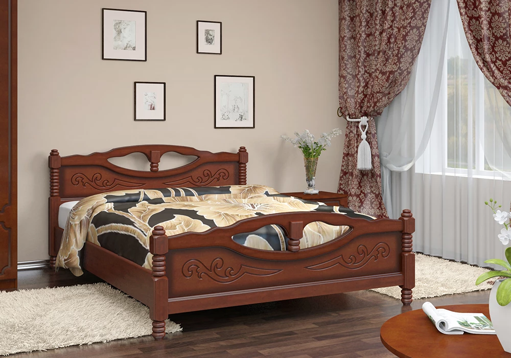 Кровать "Елена-4" изготовлена из массива сосны с элементами из МДФ. Кровать оборудована встроенным основанием. Кровать может комплектоваться как матрасом односторонней мягкости на жестком каркасе, так и металлическим каркасом с ламелями под 2-сторонний матрас.